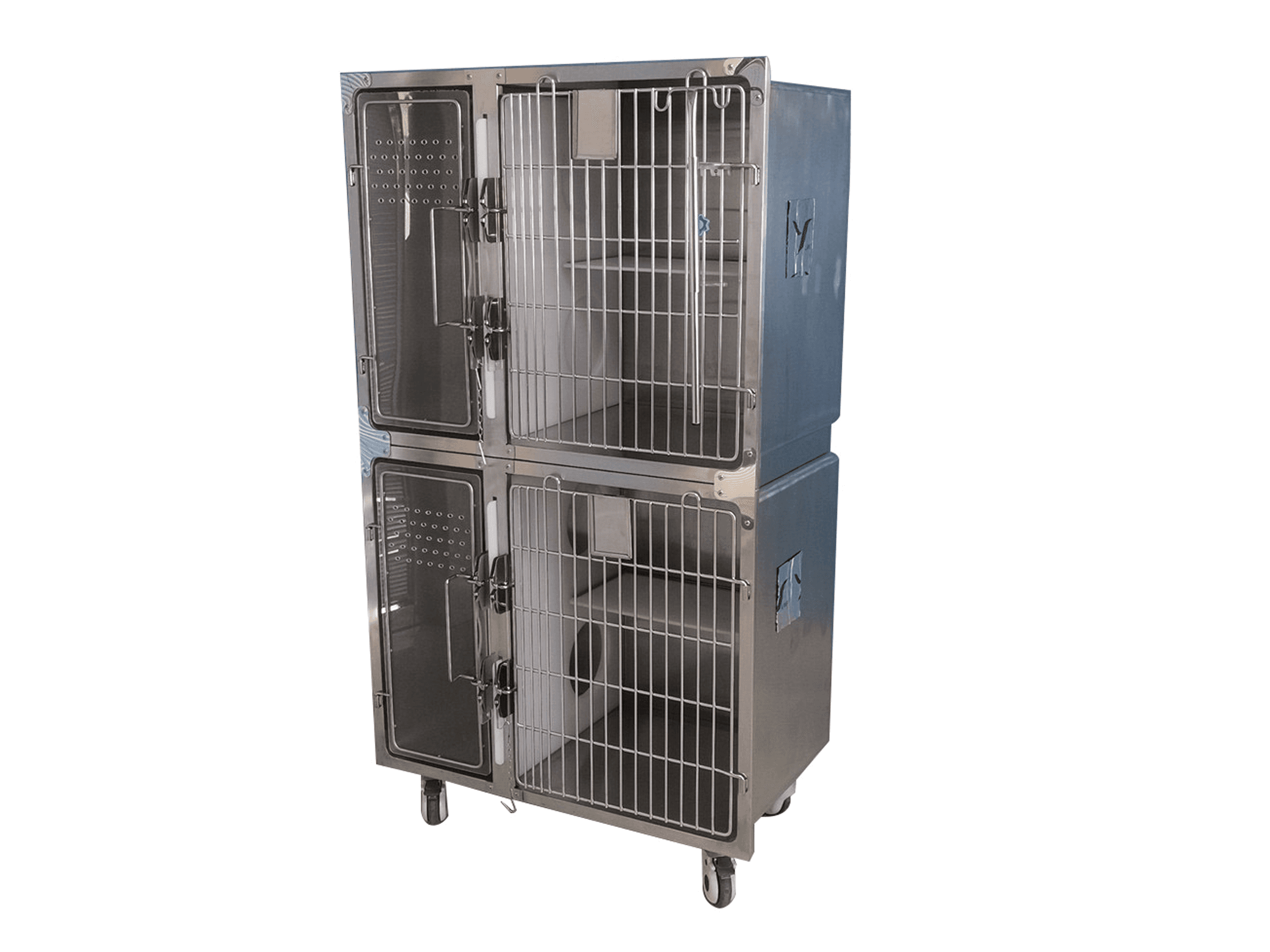 La puerta de la jaula está fabricada con varillas de acero y las del compartimiento izquierdo de acrilico.