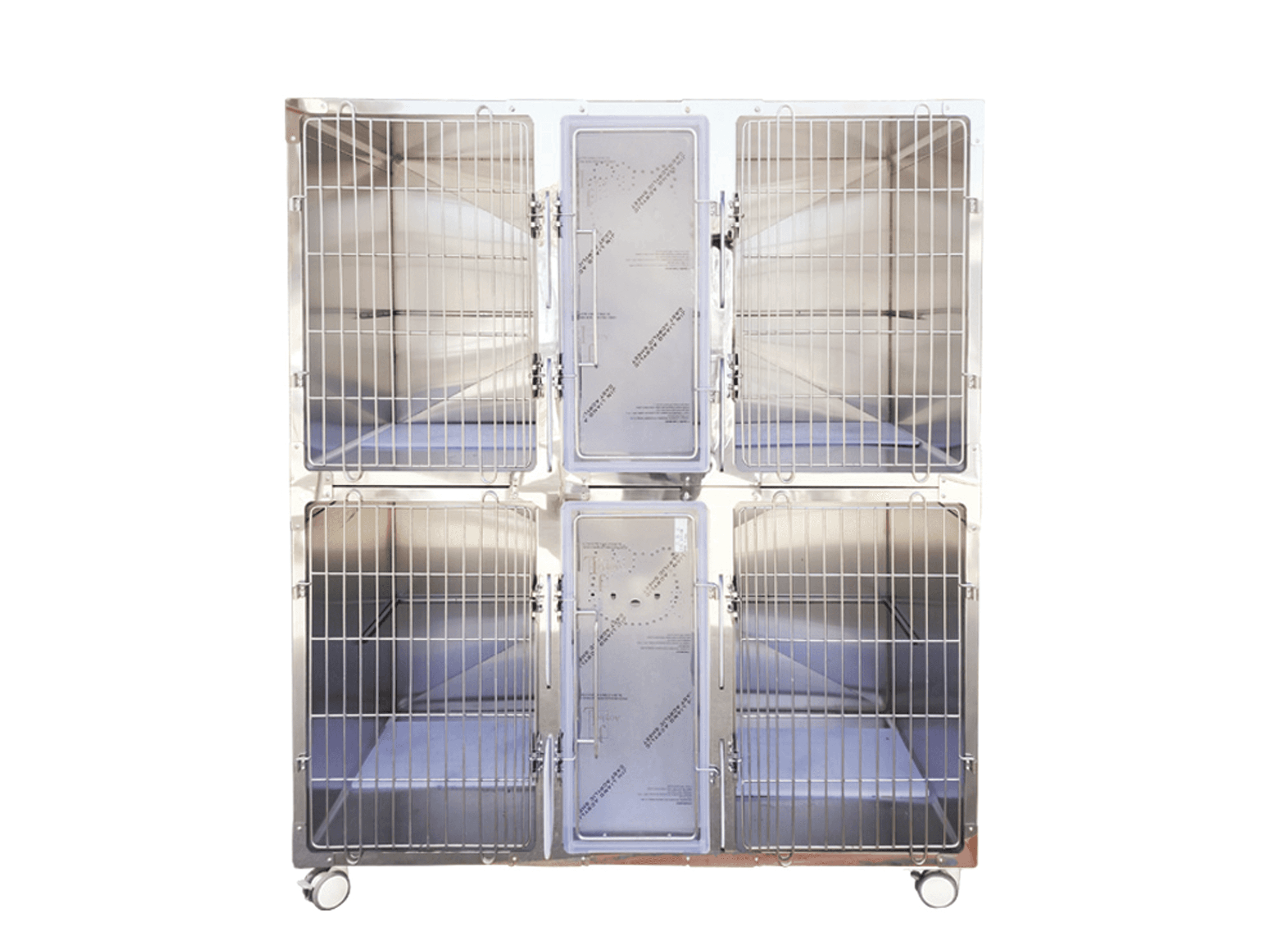 La puerta de la jaula está fabricada con varillas de acero y las del compartimiento medio de acrilico.